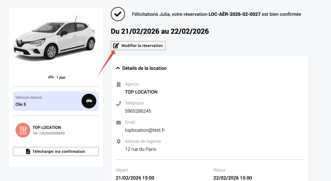2- Cliquer sur "modifier la réservation"