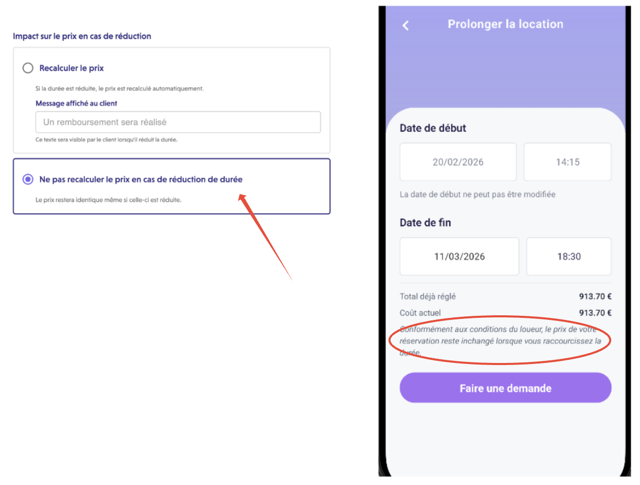 - Impact sur le prix en cas de réduction - Ne pas recalculer le prix en cas de réduction de durée